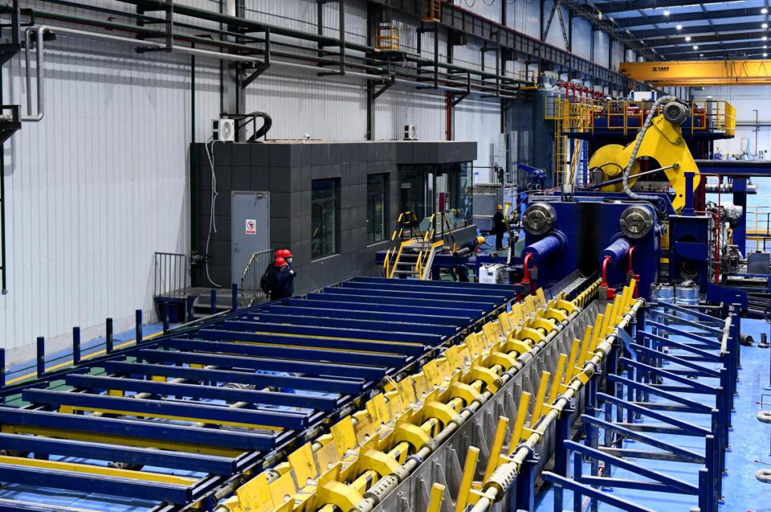 宝钛集团以“三新一高”为引领,以“高质量项目建设年”“高质量项目推进年”为抓手,将战略性新材料与先进装备制造业的“补链、延链、强链、扩链”作为核心任务,按照“谋划一批、储备一批、开工一批、投产一批”的动态管理机制,以及“结构优化、效益良好、创新驱动、充满活力、绿色发展”的高标准,系统推进高质量项目建设。目前,1850热轧机组、带材连续式退火炉、6300T卧式挤压机、1200kg真空自耗凝壳炉等一大批先进新设备已相继投入使用;眉县产业园金属复合材生产线、高品质钛铁生产线、精密机械加工生产线等也陆续投产。这些高质量项目的达产达效,不仅大幅提升了宝钛集团新材料的供给能力,更为企业逐步实现“供给高端化、结构合理化、发展绿色化、转型数字化、体系安全化”提供了有力支撑。